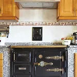 Er zijn keukengerei aanwezig in een ingerichte keuken.